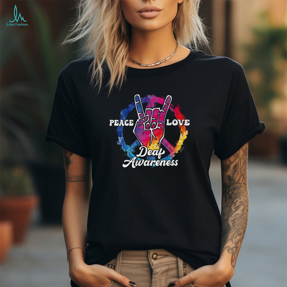 Peace Love Deaf Awareness shirtAt that instant I opened my eyes and Peace Love Deaf Awareness shirt for air as Tealc got right up to my face and started to purr and licked my cheek. I must have stopped breathing and when he couldn’t get my wife to follow fast enough took things in his own hands or paws in this case. Some years later he died in my arms. He will forever be my little dude. I miss him every single day.